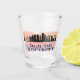 O Shot glass apresenta a silhueta de linha do horizonte da cidade de Dallas Texas com abertura de cor d'água e coordenadas de mapa de latitude e longitude