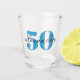 Vidro de 50 anos personalizado com texto de idade azul e nome de script moderno. As cores e as fontes podem ser alteradas se necessário
