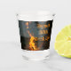 Copo de shot de festa de aniversário com texto personalizado e desenho de fogueira. Celebre o envelhecimento com uma festa ao ar livre. Personalize copos para os convidados da festa e distribua como lembranças. Adicione o nome do homenageado, idade ou outras palavras que caibam no espaço.