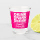 Bebida Bebeu e a palavra Embriagada de cabeça para baixo, esses copos personalizados de shot para festa de despedida solteira são divertidos de usar durante a celebração e para os convidados levarem para casa como lembrancinhas. Mostramos um fundo rosa quente, mas você pode mudar para qualquer cor.