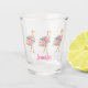 Copo De Shot Flamingos Rosa Tropical e Dourado Com Flores