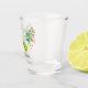 Para aqueles que gostam de um olhar de feriado mais contemporâneo, esta coleção de florais e ornamentos é para você. Este Shot Glass apresenta cores e designs de férias não tradicionais. Na frente há verde floral com ranhuras de bagas de laranja e os ornamentos são lacrimejantes, laranja e verde limão. O texto "Feliz Natal" pode ser personalizado.