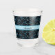 Copo De Shot Flores Elegantes, Black and Teal Damask