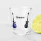 O seu nome foi emoldurado por duas guitarras elétricas, uma azul e uma preta.
