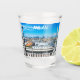 Pintura do horizonte de Milão com arranha-céus modernos no distrito financeiro de Porto Nuovo e estátuas de pedra da Catedral de Duomo.