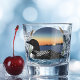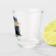 Um leão no lago com um pôr do sol e se catapultará num pano de fundo de azul