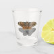Uma ilustração de uma mariposa brahmin voando sobre sua sombra. A asa do inseto está espalhada o suficiente para fazer uma moldura para o monograma. O M é pequeno para monograma e pode ser personalizado para o seu próprio começo. Dentro da linha do corpo há uma ilusão ótica de um inseto branco com as mãos apertadas na face.