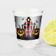 "Fright Night Shots" filmou óculos com o Creepy Jack o Lantern e morcegos voadores para a sua decoração de mesa de Halloween. Design apresenta uma cena noturna com abóboras entalhadas em primeiro plano com prédios com conchas em segundo plano e morcegos voando no céu noturno. Parte da Coleção Jack 'o Lantern. O texto pode ser alterado conforme desejado usando as guias "Personalizar este modelo" ou "Editar design". Usando a guia "Editar Design", você pode alterar o estilo, o tamanho e a cor da fonte. Feliz Dia das Bruxas!