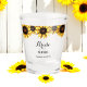 Noiva Amarela Branco Copo de Shot com Girassóis Aquarela, Texto de Casamento e Data. Mais produtos com este design estão na coleção abaixo.