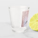 Blush Rosa Dourado Brilho Monograma Nome Assinatura Rótulo Personalizado Copo para Shot. Este design apresenta seu primeiro nome em uma linda tipografia de letra manuscrita com cauda swash (ou caligrafia) em folha metálica falsa rosa dourado com brilho glamouroso na borda. São fáceis de personalizar. Ótimo presente feminino e elegante para aquecimento de casa, também para aniversário, despedida de solteira, casamento, chá de noiva e é para a garota que ama coisas únicas e estilosas com brilho.