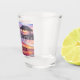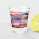 San Diego Pacific Beach Windansea Ocean Sunset Shot Glass: um Vidro Fotografado feito com quatro fotos por pôr do sol tiradas em San Diego, Califórnia, e mais especificamente em Pacific Beach e Windansea Beach. Perfeito por enviar saudações e amor de San Diego, enquanto mostra palmeiras, praias, oceano pacífico, píer de praia do Pacífico e cabana de surfs de Windansea!