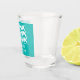 Taça de shot para despedida de solteira com as palavras Bebeu Bebeu e a palavra Embriagado de cabeça para baixo, essas taças de shot personalizadas são divertidas para usar durante a celebração e para os convidados levarem para casa como lembrancinhas. Mostramos um fundo azul turquesa, mas você pode mudar para qualquer cor.