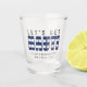 Copo para shot azul e branco listrado "vamos fazer naughty" para uma festa de despedida de solteiro(a). Personalize com o seu próprio texto.