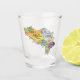 Um copo-medida com um mapa dos países e cidades da região dos Balcãs. Os países incluem: Bósnia, Sérvia, Croácia, Macedônia, Eslovênia, Montenegro, Kosovo, Albânia.