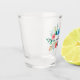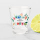 Copo para shot de despedida de solteira rosa vermelho com flores cor-de-rosa, vermelhas, azuis e folhas verdes em aquarela.