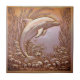 Introduce warmth and dramatic texture with this exquisite tile featuring a playful dolphin leaping above swirling waves and detailed sea flora. The design is rendered in a rich, sculptural bas-relief style, achieving the look of a vintage embossed metal plaque. Finished in a warm, antique copper tone with subtle iridescent highlights, this piece evokes luxury, high-end industrial chic, and sophisticated rustic nautical styles. Perfect for unique kitchen accents, bar backsplashes, or luxury bathrooms. ID1223 to see other marine elements in this dramatic metallic series. Note: design may contain generative content.