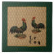 Coqs um vintage de Ferme do la - Coqs um la Ferme - galos do vintage na fazenda projeta com textura de serapilheira, fio de galinha e um quadro verde.