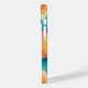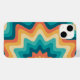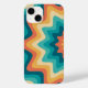 This image presents a dynamic and vibrant abstract design reminiscent of 1970s aesthetics. It utilizes a captivating interplay of curved lines and a striking color palette, predominantly featuring warm and cool tones like orange, yellow, blue, and teal. The lines are arranged in a radiating pattern, creating a sense of movement and energy that draws the viewer's eye inward. The subtle variation in line thickness and color intensity adds depth and visual interest to the composition. This design evokes a sense of fluidity and rhythm, reminiscent of water or liquid. The clean lines and bold colors create a visually stimulating and engaging composition.