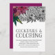 Hospedando uma noite de coloração adulta com um lado de vinho? Convide amigos a compartilhar seu lado criativo com esses belos convites de festas coloridos, com uma borda de flores tropicais exuberantes em preto e branco, parcialmente coloridos com matizes brilhantes e vibrantes. "Cocktails and Coloring" e seus detalhes de evento aparecem em preto nítido. Uma escolha perfeita para um tema de festa único!