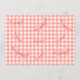 The entire design is set against a soft, light red gingham background that gives it a sweet, airy, and "Cottage core" feel. Charming watercolor strawberries and dainty red bows accent the corners, making it the perfect choice for a summer picnic, a garden party, or a "Sweet One" celebration.