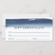 Certificado de presente moderno e masculino com um simples design com um marinho azul de pincelada de aquarela no topo. A parte traseira tem as informações de contato em branco sobre azul marinho. Este presente profissional é excelente para uma profissão criativa.