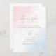 Convide amigos e familiares a um gênero revelarem com este belo convite, apresentando uma lavagem de aquarela rosa e azul com tipografia dourada.