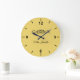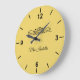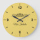 Apresentando a cor da primavera da tendência: Amarelo Suave. Relógio de parede grande moderno e na moda com horas, elemento linear decorativo no estilo de tatuagem e nome personalizável em preto clássico. Seu design simples e limpo em uma cor sólida oferece um eterno e um apelo clássico. Explore nossas cores de tendência de primavera para mais produtos da mesma cor ou descubra outras matizes de na moda para corresponder ao seu estilo pessoal.