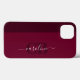 Design minimalista e moderno em burgundy escura clássica com nome e monograma personalizáveis numa fonte moderna para uma aparência limpa e na moda. Personalize facilmente o nome e o monograma de duas letras para torná-lo único. — Incêndio na sofisticação com nossa capa de telefone burgundy personalizada, canvas de elegância subestimada. Apresentando uma faixa mais escura do lado esquerdo, este design minimalista cativa. Ele tem um monograma arrojado de duas letras em uma matiz burgundy profunda e moderna, tocado por uma fonte de script de ornamentado em branco escrito à mão. Facilmente personalizado com seu monograma e nome exclusivos. Ele duplica como um presente personalizável e constante, perfeito para expressar pensamento e estilo. — Tendência Color Dark Burgundy para outono e inverno. Esta cor não é apenas a moda, mas também o eterno e o clássico. Design simples e limpo com cores sólidas para um recurso de eterno.