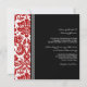 Cartões de convite de casamento em um padrão vintage elegante e contemporâneo preto, vermelho e branco clássico e chic floral damask. Personalize esses convites com seus detalhes de casamento. Disponível em produtos correspondentes para todas as suas necessidades de casamento.