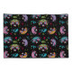 O grupo da fronha de almofada dos crânios do açúcar do Pug tem um crânio cor-de-rosa do açúcar do pug em um e o crânio azul no outro ambos do açúcar do pug. Ambos têm um teste padrão do crânio do açúcar do pug da multi-cor na parte traseira. Fundo preto.