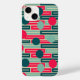 Esta capa de telefone tem um design moderno do século médio de retângulos repetidos em rosa, cor-de-rosa e azul com círculos dispostos em cima.