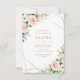 design floral geométrico com flores rosas pintadas com a mão roxa e um quadro geométrico de ouro. Os detalhes de cor e texto podem ser personalizados.