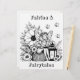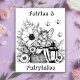 Página de coloração do conto de fadas. Crianças ou página adulta colorida com fada bonito lendo um livro em um lote de flores grandes ao lado de uma lanterna.