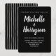 Convide amigos e familiares para comparecerem seu dia especial com nossos convites para casamento simples e modernos. Os convites de casamento minimalistas combinam caligrafia elegante com um esquema elegante de preto e branco. Personalize os convites de casamento com seus detalhes de casamento. A placa se retorna a uma cor sólida com linhas verticais desenhadas à mão branca. RSVP/placa/acessórios correspondentes disponíveis na loja. Qualquer cor disponível, entre em contato conosco para solicitar personalização