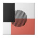 Esta moderna design geométrica moderna apresenta grandes blocos retangulares de cor em coral, preto e branco, complementados por um círculo listrado preto.