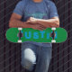 simples skate verde e azul para ele, para ela ou para eles é o seu nome personalizado em uma risca arrojada e esmerilada. Obtenha o design abstrato perfeito para um aniversário adolescente ou um presente de Natal. Escreva seu próprio nome para um skate personalizado.