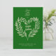 Anuncie a data do seu casamento com este elegante design de save the date apresentando uma delicada grinalda botânica em forma de coração sobre um rico fundo verde esmeralda. O layout minimalista refinado e os detalhes botânicos suaves criam uma estética atemporal e romântica, perfeita para casamentos no jardim, celebrações em vinhedos e cerimônias formais clássicas. Uma maneira sofisticada de compartilhar o seu dia especial.