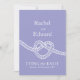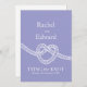 Simples esboço gráfico moderno em forma de coração convite para casamento de casando em roxo e branco. O casando é um símbolo clássico para mostrar a união de dois numa unidade interligada e duradoura. Outros itens correspondentes estão disponíveis. Gráfico e design de esboço simples do nó por www.mylittleedenweddings.com