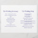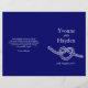 Simples desenho em branco e azul marinho escuro de um programa de casamento de nó em forma de coração. A design de casamento simples e fascinante do estilo moderno do jogo de papéis de carta de casamento do nó de amor. Edite este programa de casamento com seu próprio nome, datas, texto da cerimônia, assistentes de festa de casamento e obrigados. Um programa simples, mas elegante, simplesmente substitua o texto de amostra pelos detalhes de suas informações de casamento e dobre programas ao meio na entrega. Um programa de casamento perfeito para um simples casamento moderno para mostrar sua união e unidade. Desenho exclusivo e design por Sarah Trett.