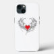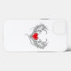 Coração vermelho pintado artificialmente com cinza de asas de anjo, decorado com contorno liso preto.