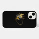 Dourada estrutura em forma de coração, decorada com ouro, joias e borboletas brancas sobre fundo preto.