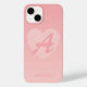 Um design de cor rosa pincelado com um coração cor-de-rosa pincelado e um script de tipografia personalizável. Você pode personalizar facilmente este caso com seu próprio nome e monograma inicial.