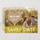 Avisos de casamento rústicos. Criado por Elke Clarke e disponível em www.zazzle.com/monogramgallery. Texto branco moderno, simples e ousado em um coração de aniagem perfurado por uma seta branca. Totalmente personalizável se você selecionar "personalizá-lo". Substitua a foto mostrada na amostra pela sua própria foto de noivado.