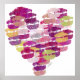 Formas de lábios em vários tons de roxo em forma cardíaca. Esta poster é perfeita para uma decoração do Dia do Namorados ou para uma bela peça de arte a qualquer momento do ano!