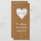 Coração de papel em madeira com monograma cerimônia de casamento e programa de festas ou recepção com papel de notebook amam coração com buracos em torno dela em madeira marrom. No coração há suas iniciais. Este design de modelo de casamento monograma, rústico, é completamente personalizável e é perfeito para um casamento outono casual. Texto em branco usando uma fonte que se parece com escrita manual.