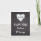 Coração de papel no quadro-negro com monograma de casamento Agradecimento foto cartão nota com sua foto no interior, apresentando um coração de amor de papel de caderno com furos ao redor em quadro-negro preto. No coração estão suas iniciais. Este design de modelo de casamento monogramado rústico e caprichoso é completamente personalizável e é perfeito para um casamento casual, especialmente para professores. Texto em branco usando uma fonte que se assemelha à escrita à mão.