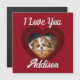 Cartão magnético Coração de São Valentão com amor de shih tzu Foto personalizada com nome. Shihtzu com texto Eu amo você em vermelho escuro. Personalize com seu nome e foto. Ideia de presente para amantes de cães no Dia dos Namorados. Lindo cachorro fofo deitado no chão. Filhote marrom e branco com pelo longo, olhos grandes e sonhadores e nariz preto.