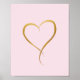 Coração dourado em fundo rosa - impressão de arte - berçário - quarto de meninas - escritório - decoração