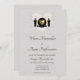 Este é um convite de casamento com um design de dois noivos, de pé em ambos os lados de um coração de ouro e uma cinza de fundo. Este item faz parte de um conjunto de casamento que inclui um convite de casamento, um cartão de rsvp e muito mais. (Os elementos dourados do conjunto são ouro falso e não folha de ouro.)