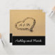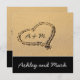 Coração no convite do casamento de praia
